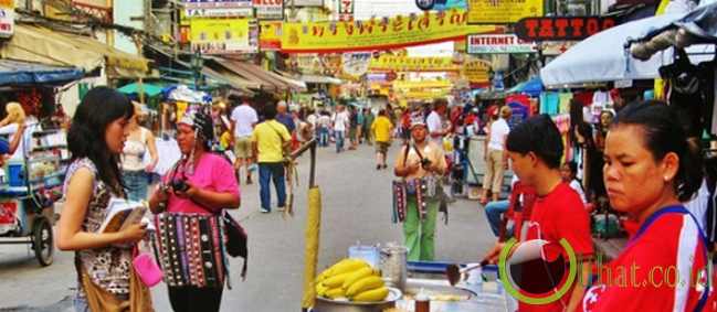 [lihat.co.id] - Khao San Road adalah jalan terkenal di kalangan backpackers karena biaya akomodasi yang murah. Khao San terletak di sekitar satu blok dari Sungai Chao Phray. Khao San berarti "beras giling," pemberian nama ini mengacu pada sejarah sebagai pasar beras. Selama 20 tahun terakhir, selain terkenal dengan akomodasi murah.