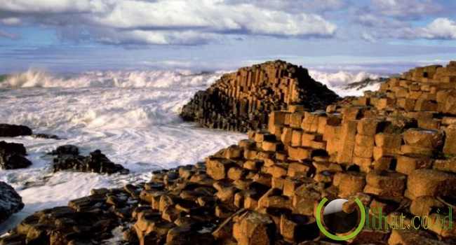 [lihat.co.id] - Tumpukan bebatuan berbentuk hexagonal tersusun rapi di sisi pantai. Pengunjung dapat menelusuri dan berjalan di atasnya untuk menikmati pantai.