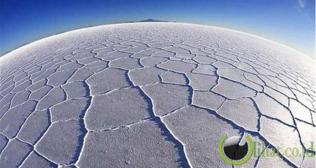Salar de Uyuni merupakan sebuah lanskap putih yang menyilaukan di Bolivia. Ada sekitar 10 miliar ton garam yang tersebar di tempat seluas 4 ribu mil persegi ini.