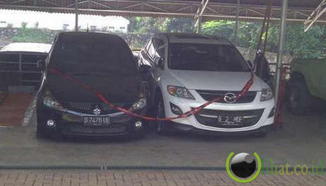 Namun mereka selalu dihalangi petugas keamanan gedung Keenam mobil itu adalah VW Carravelle, Mazda CX9, Fortuner B 544, Mitsubishi Pajero Sport,