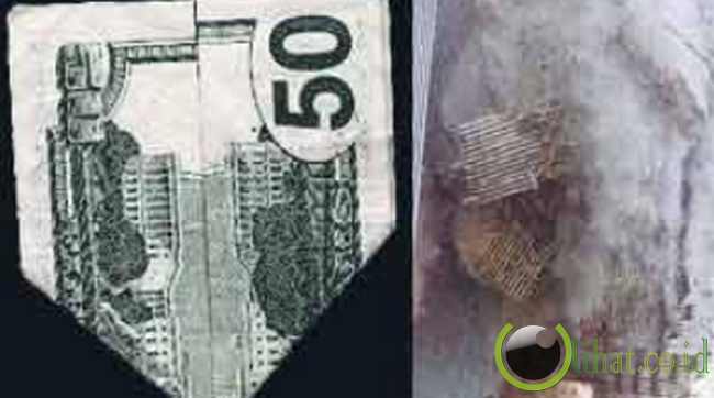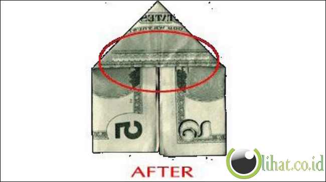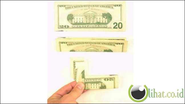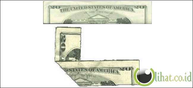 6.Masih uang 20 dolar. Apabila dilipat dengan cara seperti di bawah ini, maka muncul nama OSAMA: